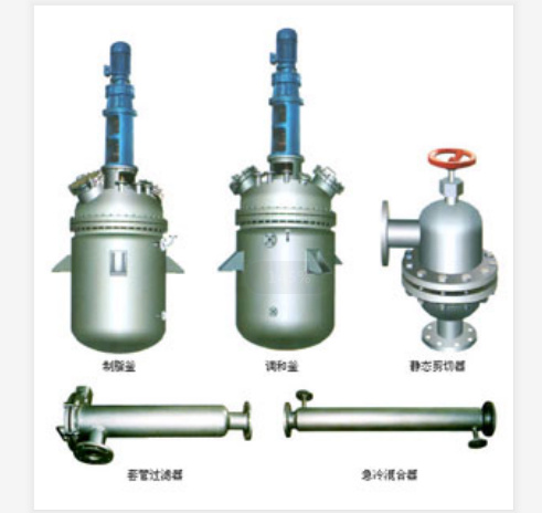 靜態剪切器、脫氣罐、套管過濾器、急冷混合器、均質機、分裝機等。